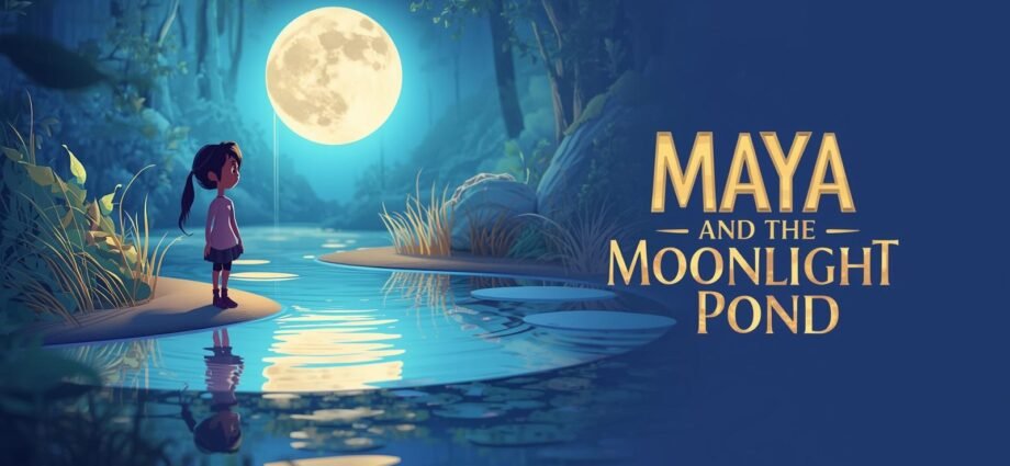 The path to the pond was lined with tall grasses swaying gently in the wind. Maya’s bare feet barely made a sound on the soft earth. As she reached the pond, she gasped. The water looked like liquid silver, calm and shining under the moonlight.